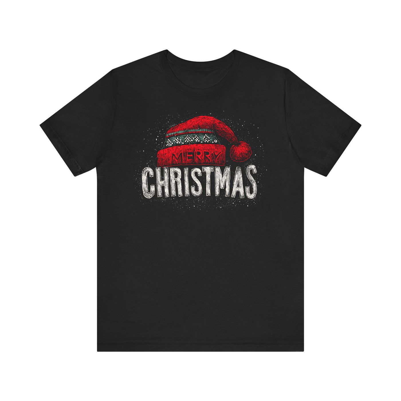 Merry Christmas T-Shirt – Red Knit Hat & Snowfall Graphic